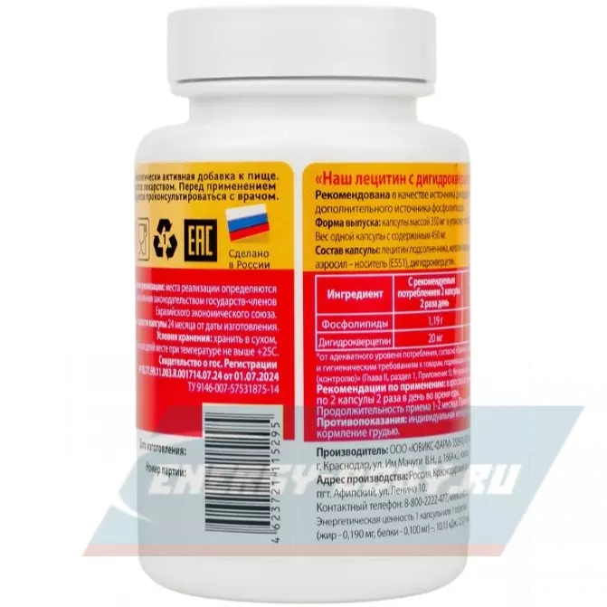НАШ ЛЕЦИТИН с Дигидрокверцетином 60 капсул — Улучшает функции печени, ЖКТ и почек