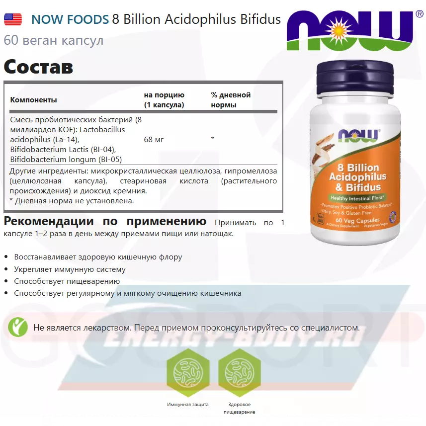 Состав NOW Foods 8 Billion Acidophilus Bifidus