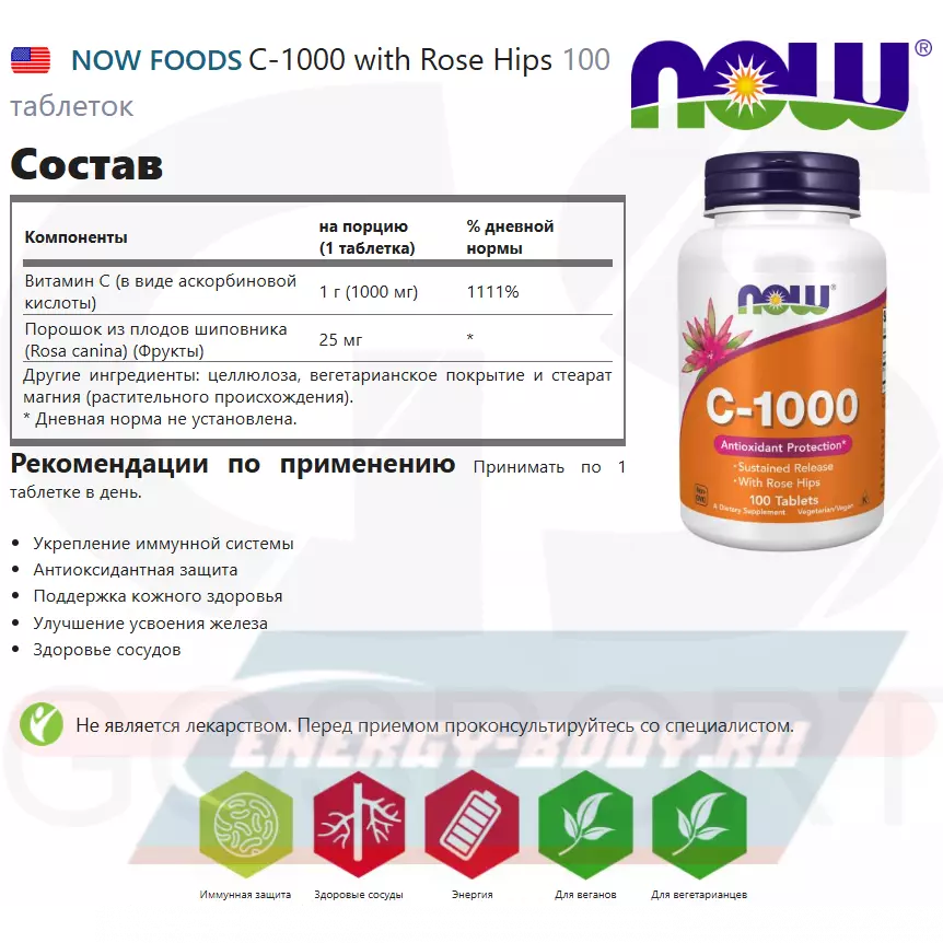 Состав NOW FOODS C-1000 with Rose Hips