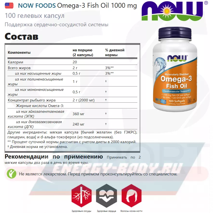 - Полное описание Omega-3 Fish Oil 1000 mg