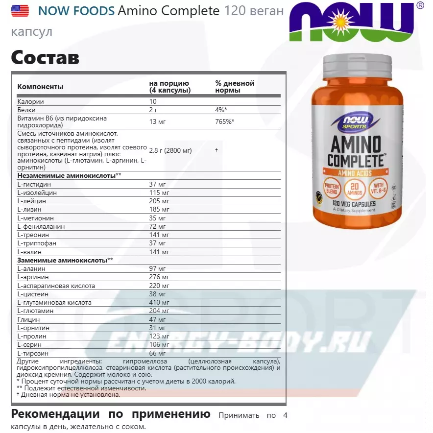 NOW FOODS Amino Complete 120 веган капсул — Роста мышц, выносливость и восстановление