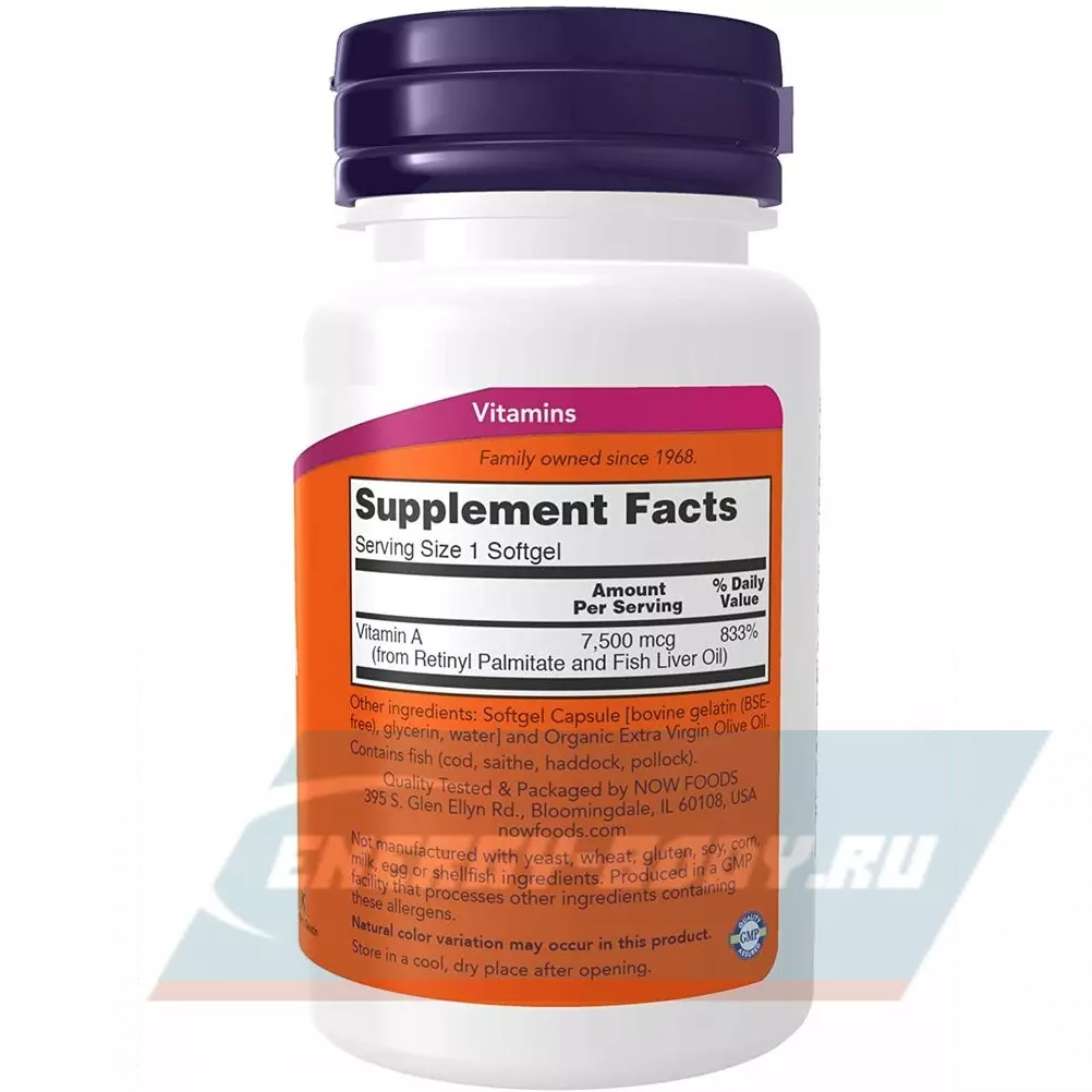 Состав NOW FOODS Vitamin A 25000IU from Fish Liver Oil