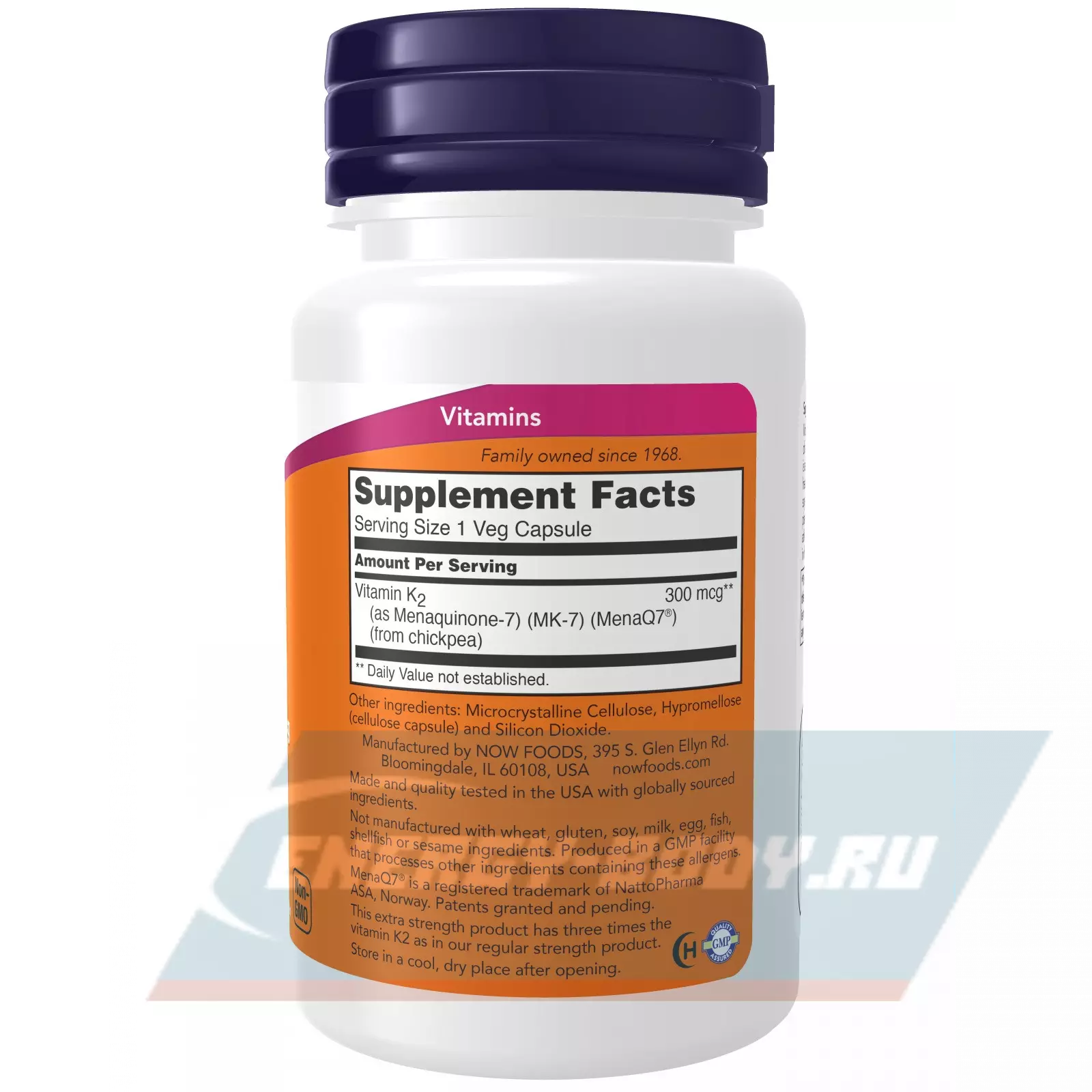 Состав NOW FOODS MK-7 Vitamin K2 300 mcg