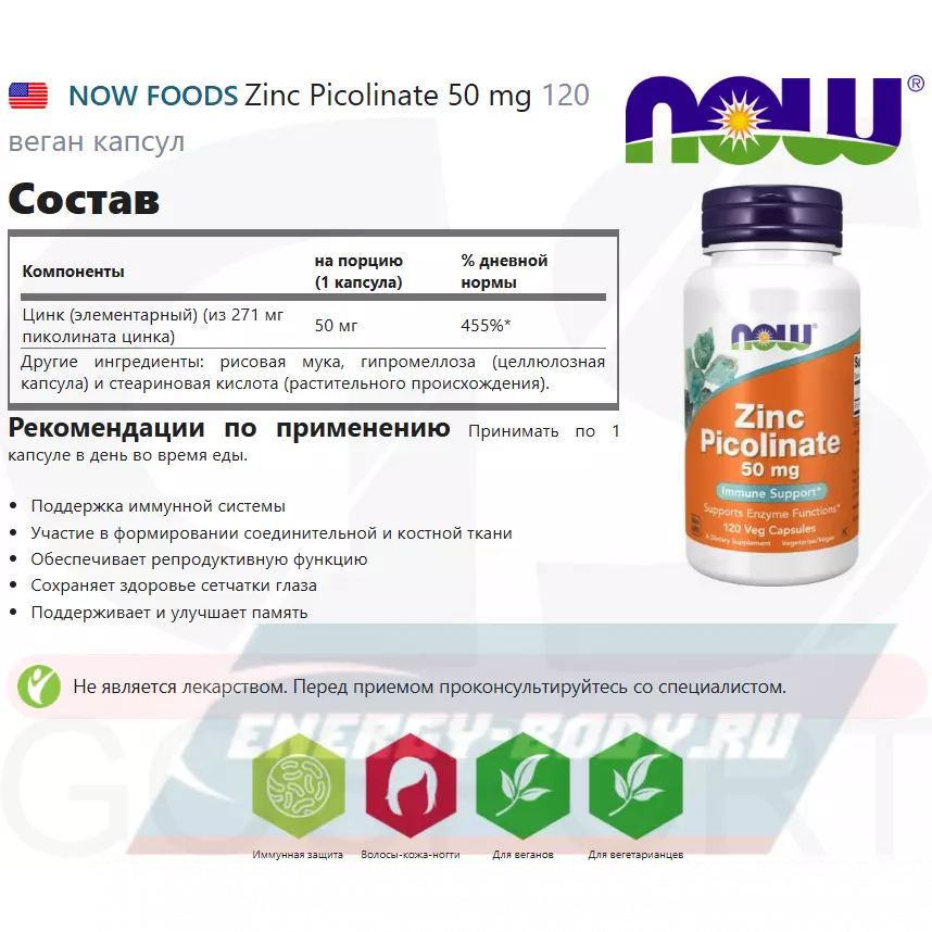 - Полное описание Zinc Picolinate 50 mg