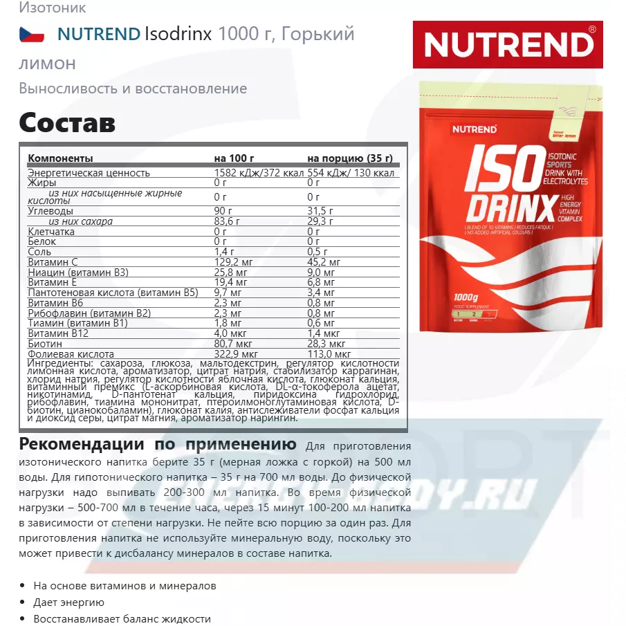 Состав NUTREND Isodrinx