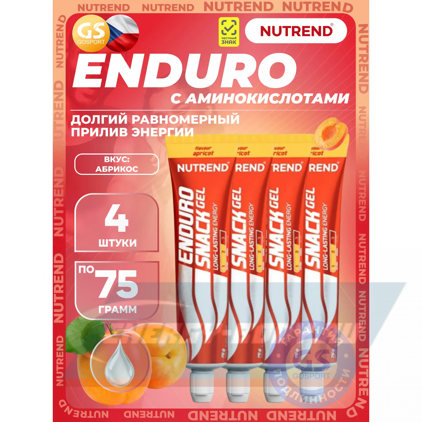 Энергетический гель NUTREND EnduroSnack 4 x 75 г, Абрикос Энергетический гель NUTREND EnduroSnack 4 x 75 г, Абрикос Энергетический гель NUTREND EnduroSnack 4 x 75 г, Абрикос Энергетический гель NUTREND EnduroSnack 4 x 75 г, Абрикос