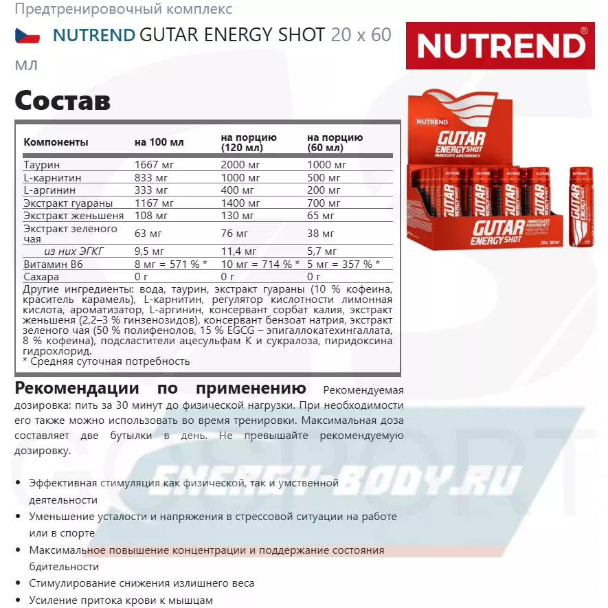 - Полное описание GUTAR ENERGY SHOT