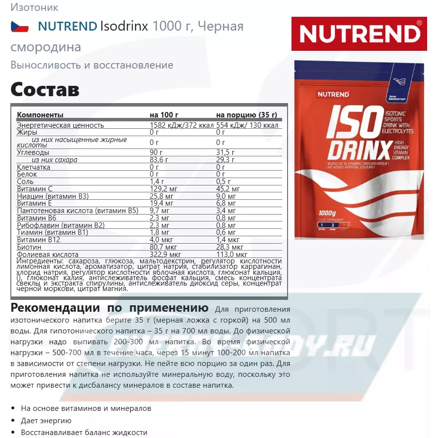 NUTREND Isodrinx 1000 г, Черная смородина — Восполнение запасов жидкости, минералов, выносливости