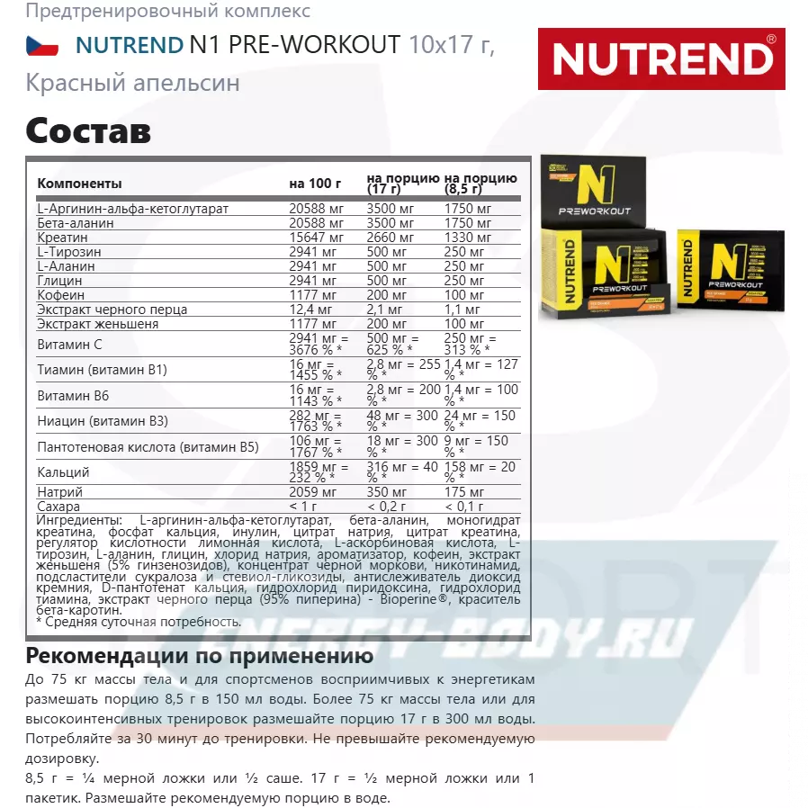 N1 PRE-WORKOUT 10х17 г, Красный апельсин