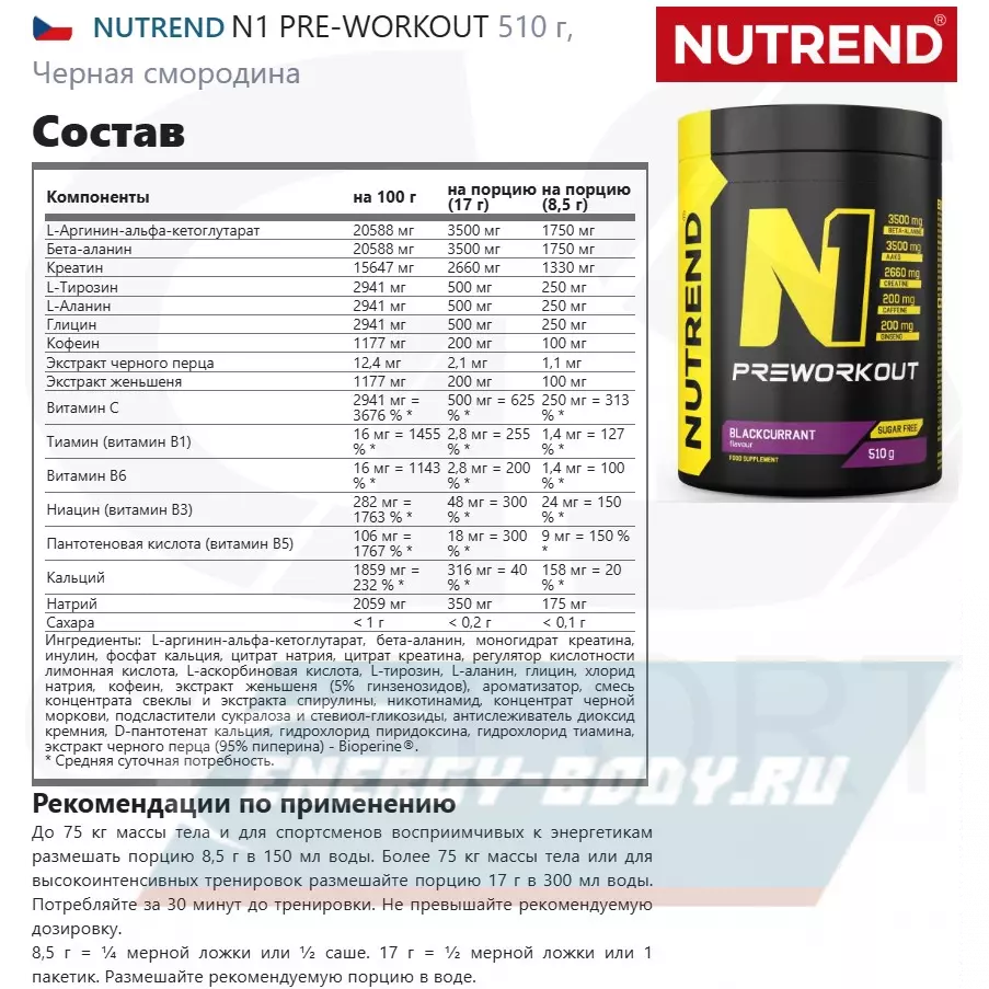 N1 PRE-WORKOUT 510 г, Черная смородина