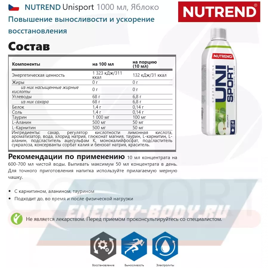 - Пригоден для использования спортсменами, содержит сахар и подсластители.