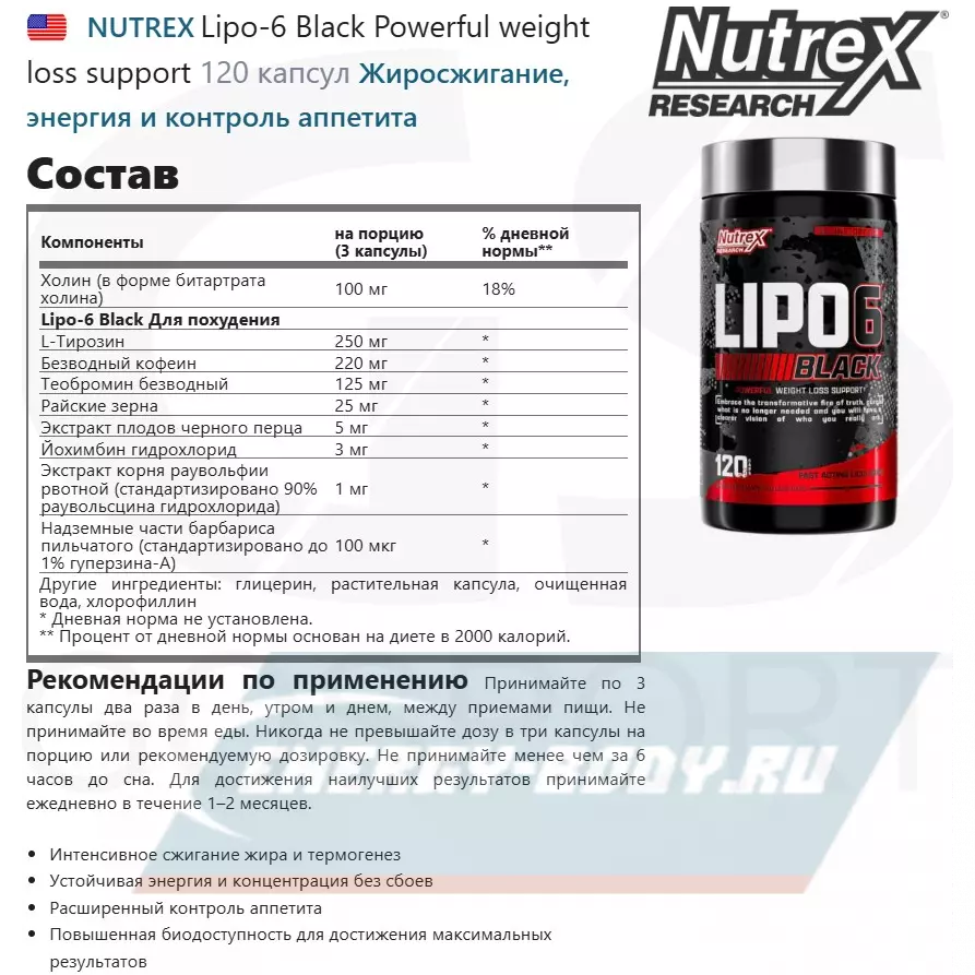 - Полное описание Lipo-6 Black Powerful weight loss support