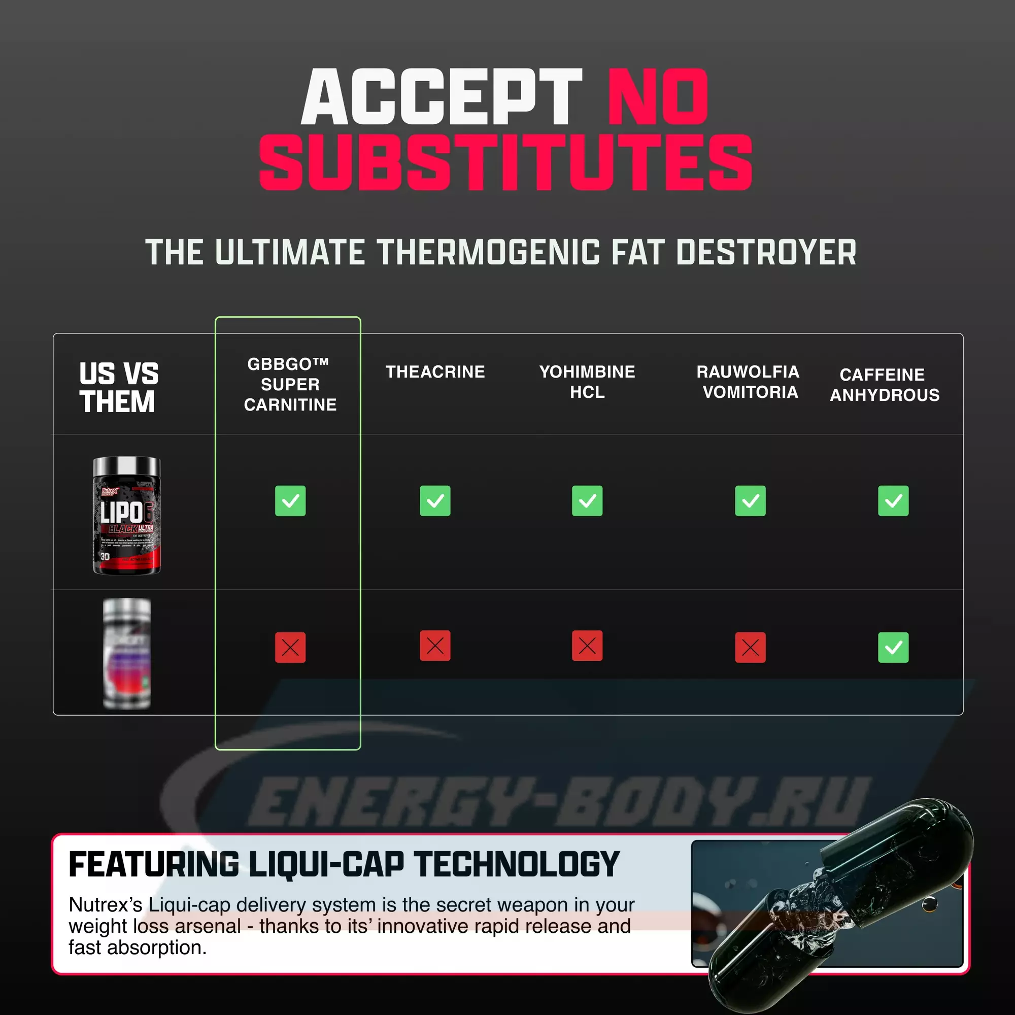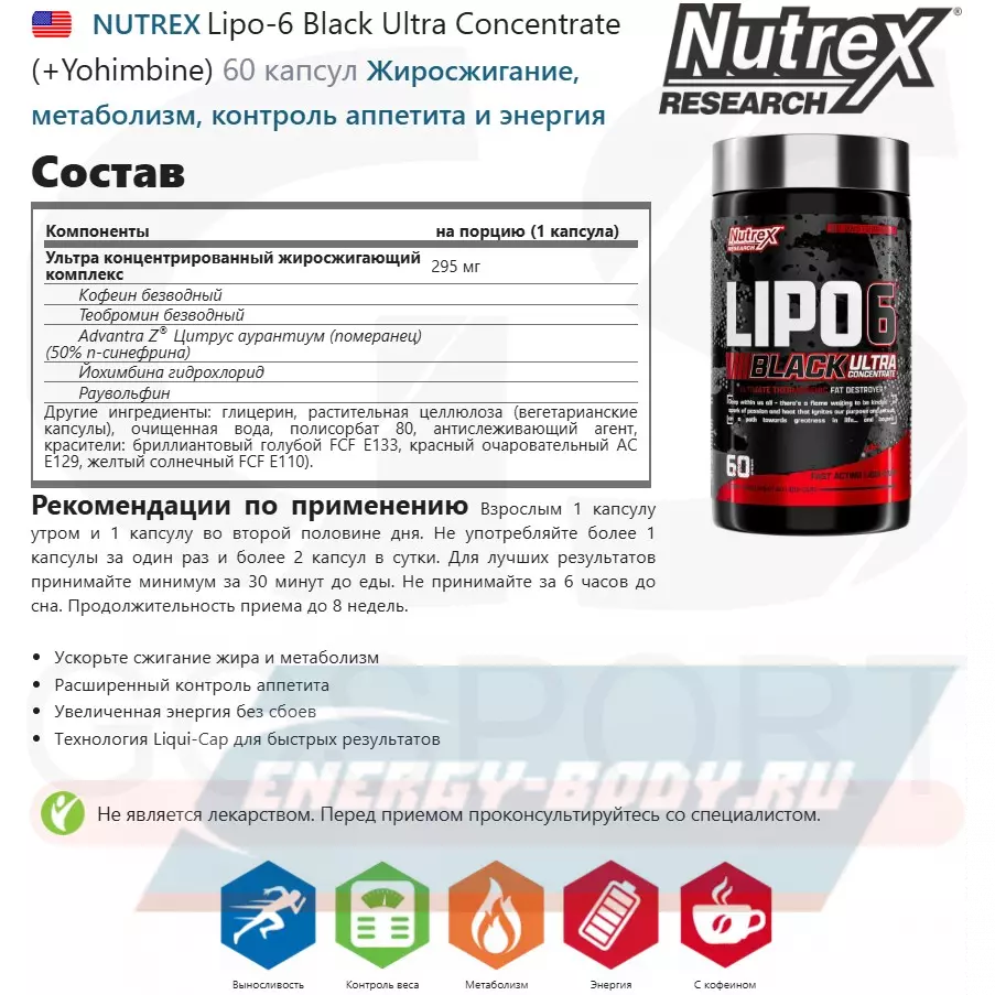 NUTREX Lipo-6 Black Ultra Concentrate (+Yohimbine) 60 капсул — Жиросжигание, метаболизм, контроль аппетита и энергия