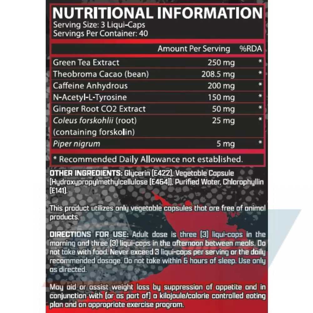 Жиросжигающий комплекс Lipo-6 Black US от Nutrex поможет вам эффективнее сжигать жир за счет ускорения процессов термогенеза и липолиза. А обеспечивают подобный эффект специальные компоненты в его составе, такие как безводный кофеин, Advantra Z, экстракты бакопы и женьшеня и йохимбин. Вы сможете успешно бороться с приступами голода. Вы также без проблем будете справляться с утомлением, поскольку будете подпитываться энергией, получаемой от сжигания жира. Не говоря уже о том, что в формуле данного комплекса есть соединения, стимулирующие мозговую активность и поддерживающие высокую концентрацию внимания.