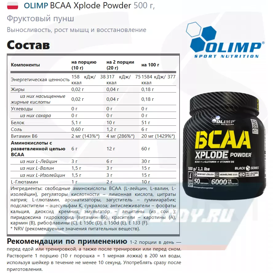 - Целых 6 г BCAA самого высокого качества в каждой порции