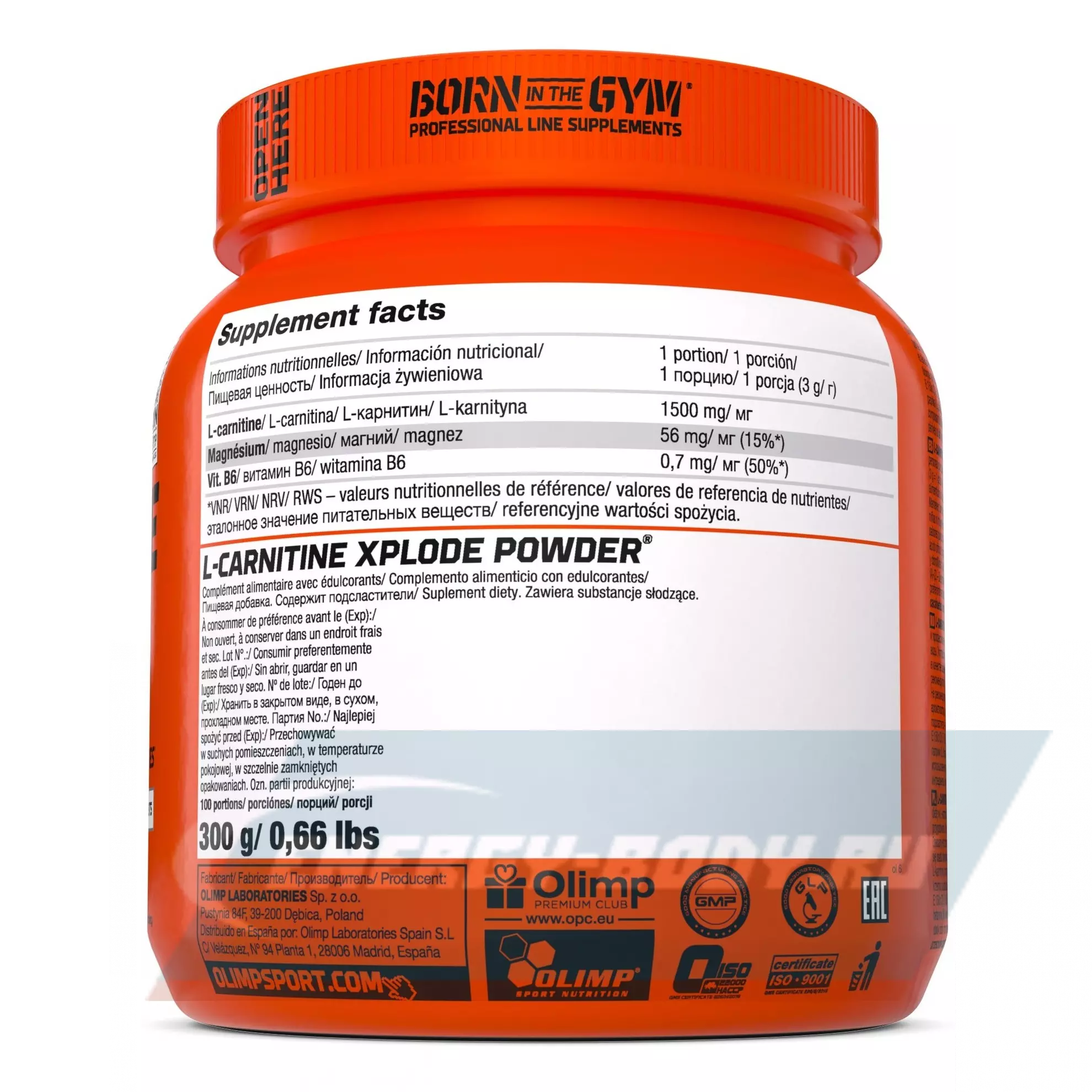 В основе L-Carnitine Xplode от Olimp содержатся карнитин, магний и витамин Б6.