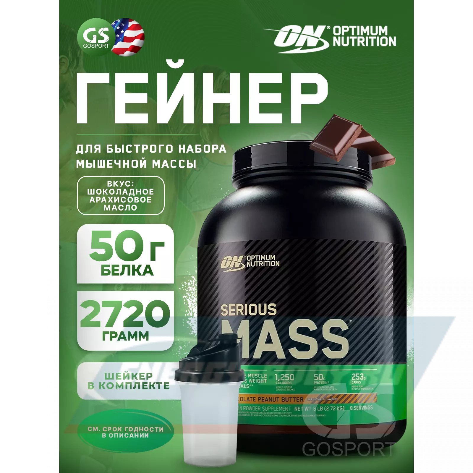 Serious Mass 2720 г + шейкер, Шоколадное арахисовое масло