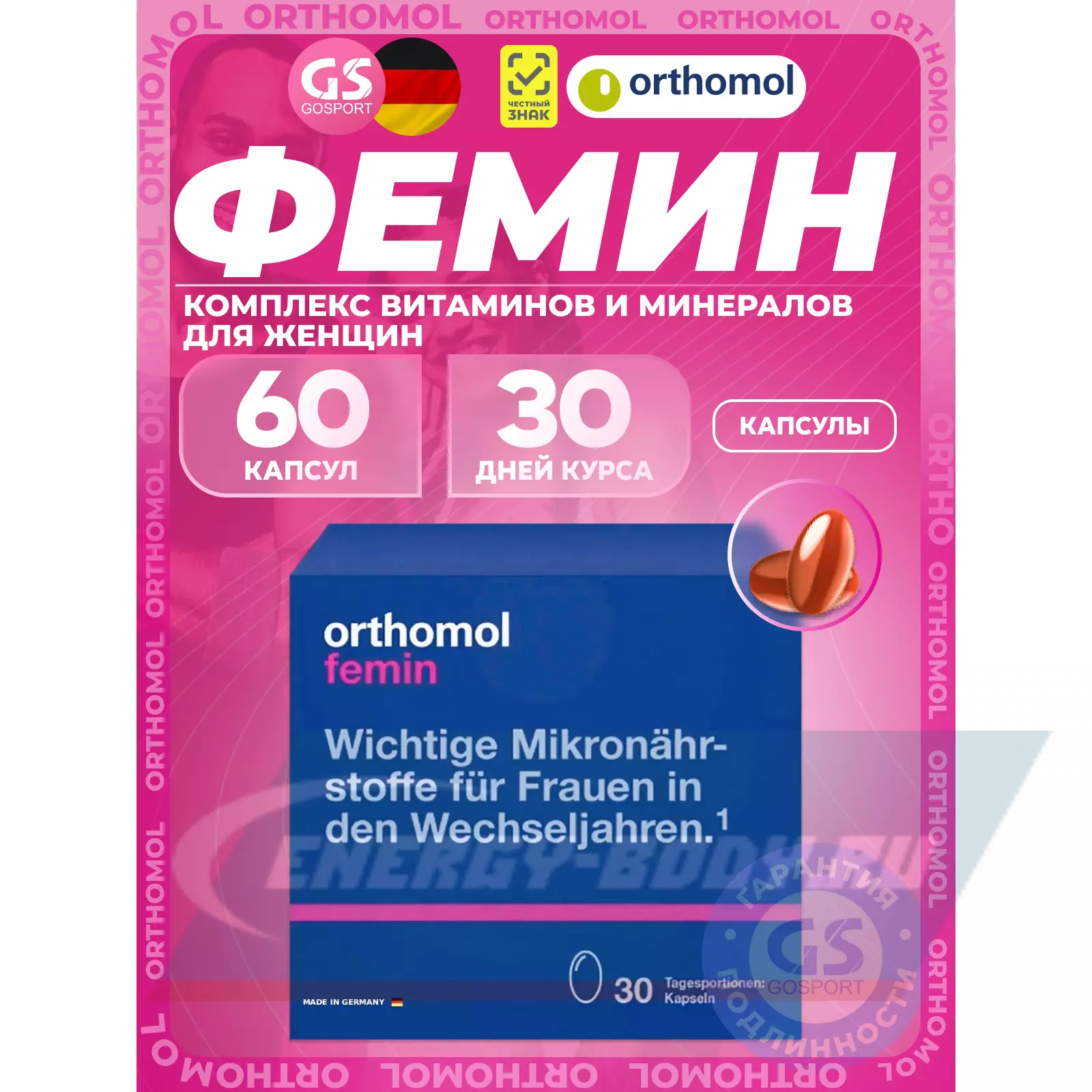 Ортомол Фемин это – специальный комплекс витаминов, микроэлементов и питательных веществ для женщин, переживающих период менопаузы. Ортомол Фемин содержит необходимые питательные вещества для кожи, волос и ногтей. А так же - биофлавоноиды сои, лигнаны льняного семени, незаменимые жирные кислоты и коэнзим Q10 – вещества активно борющиеся с проявлениями менопаузы.