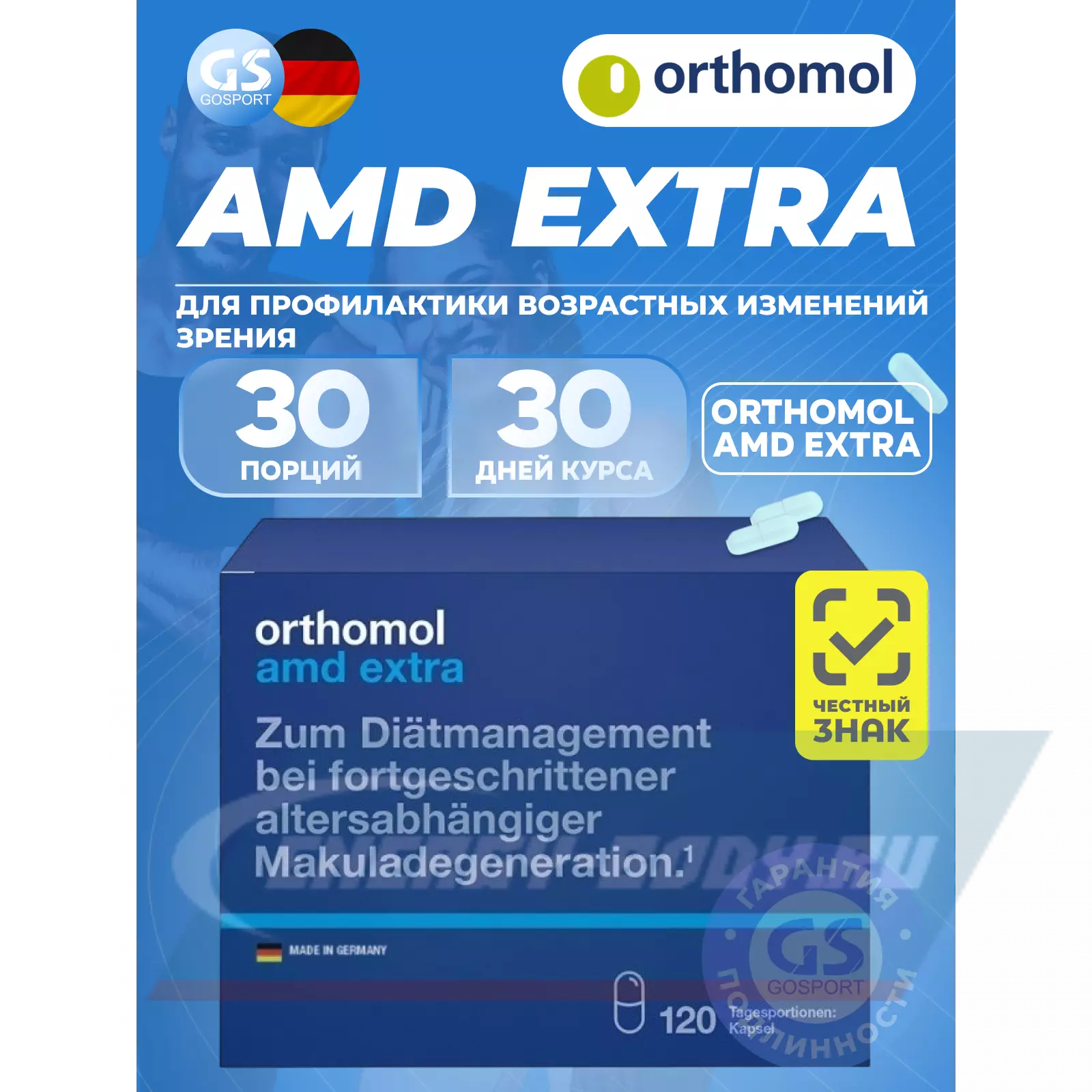 Витаминный комплекс Ортомол АМД Экстра был разработан как дополнительный комплекс при диетическом лечении возрастной макулярной дегенерации сетчатки глаза, специфически повышающем потребность микронутриентов у пациентов. Ортомол АМД Экстра содержит витамины Е и С, а также цинк, лютеин, зеаксантин и медь, прием которых способствует питанию сетчатки глаза.