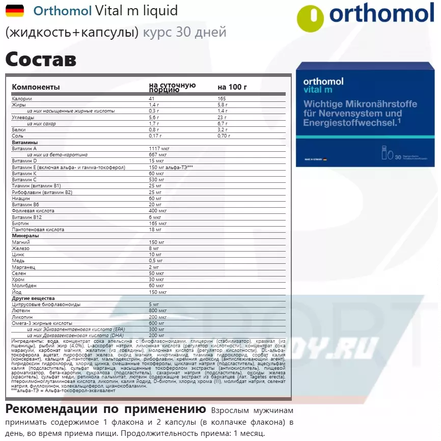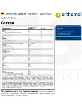 Состав Orthomol Vital m liquid (жидкость+капсулы)