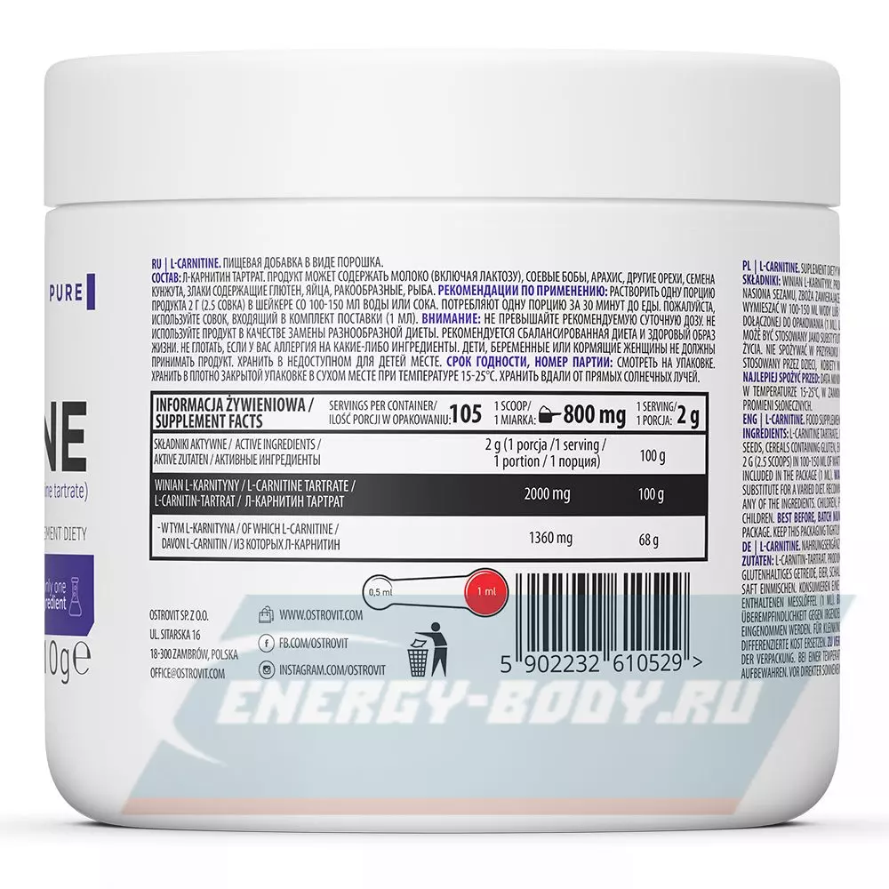 Состав OstroVit L-Carnitine supreme PURE