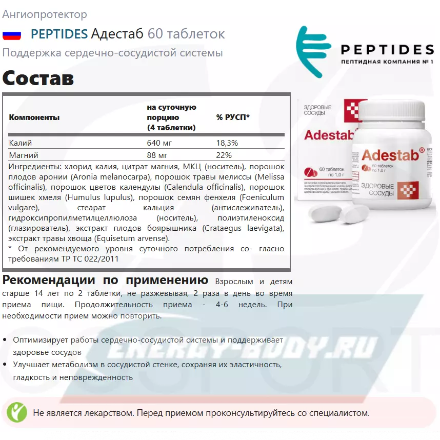 Многокомпонентный ангиопротектор Адестаб - поддержка сердечно-сосудистой системы
