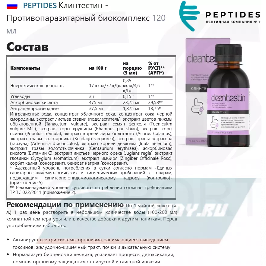 Состав PEPTIDES Клинтестин (Cleantestin)