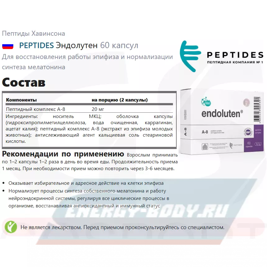 PEPTIDES Эндолутен (Endoluten) 60 капсул — Для гормонального фона и нейроэндокринной системы