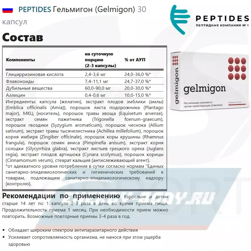 Состав PEPTIDES Гельмигон (Gelmigon)