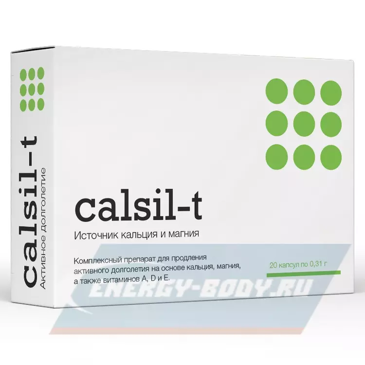 В состав Кальсил-Т входит натуральные цитраты и карбонаты кальция и магния в сочетании с витаминами А, Д3, Е, что делает усвоение кальция максимально эффективным, уровень его биодоступности и усвояемости достигает 70%, тогда как обычный кальций усваивается всего лишь от 2 до 8%.