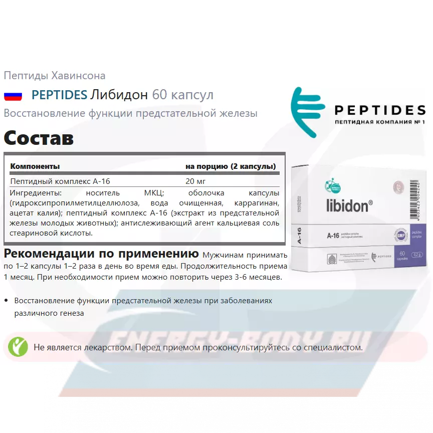 PEPTIDES Либидон (Libidon) 60 капсул — Восстановление функций предстательной железы