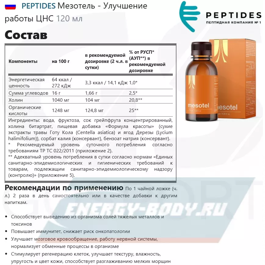 Мезотель - комплексный антиоксидант и нейромедиатор на основе холина, готу колы и дерезы