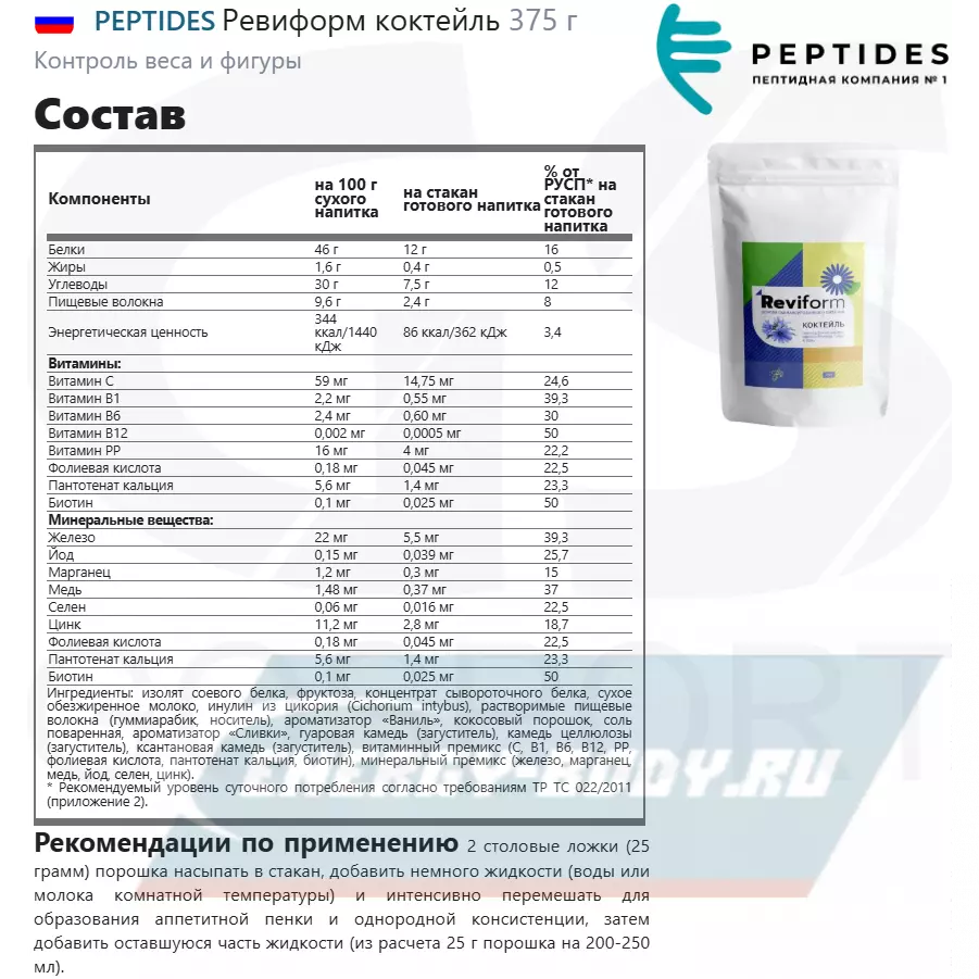 Состав PEPTIDES Ревиформ коктейль