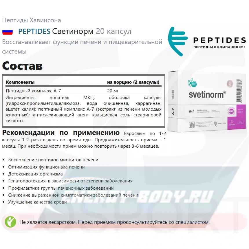 PEPTIDES Светинорм (Svetinorm) 20 капсул — Здоровье печени и детоксикация организма