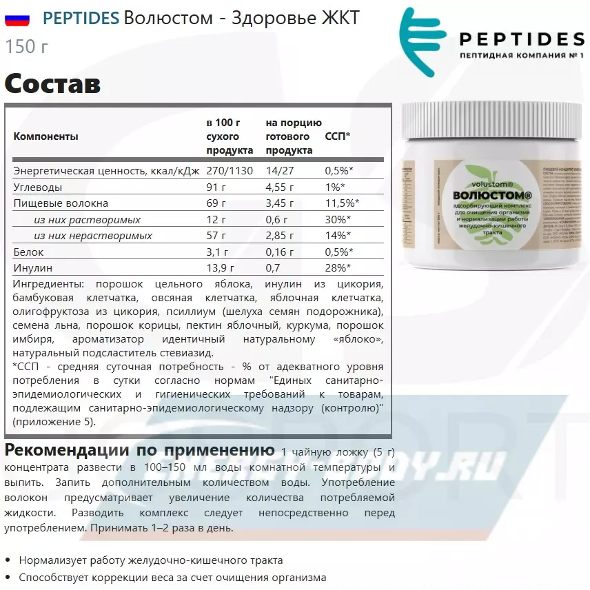 Состав PEPTIDES Волюстом - Здоровье ЖКТ