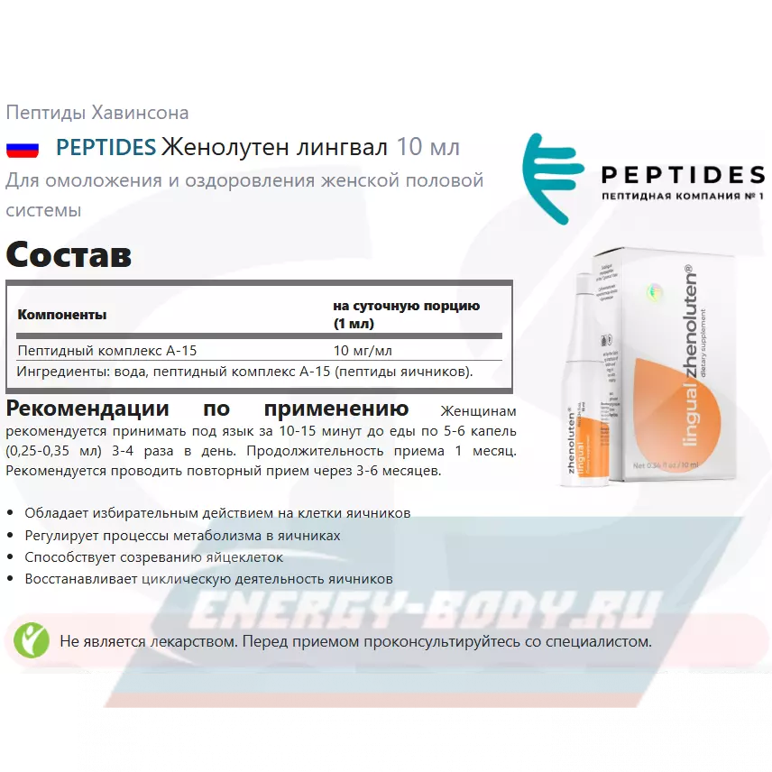Состав PEPTIDES Женолутен (Zhenoluten) лингвал