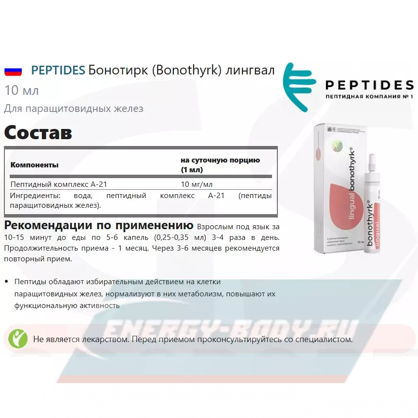 PEPTIDES Бонотирк (Bonothyrk) лингвал 10 мл — Повышение функциональной активности паращитовидных желез