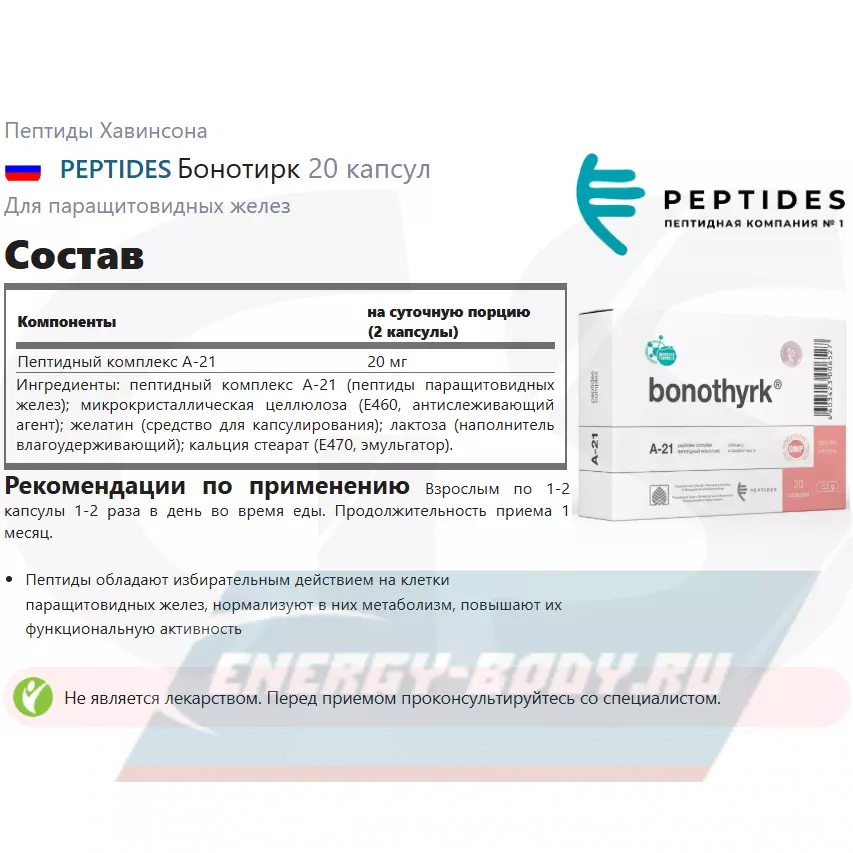 PEPTIDES Бонотирк (Bonothyrk) 20 капсул — Повышение функциональной активности паращитовидных желез