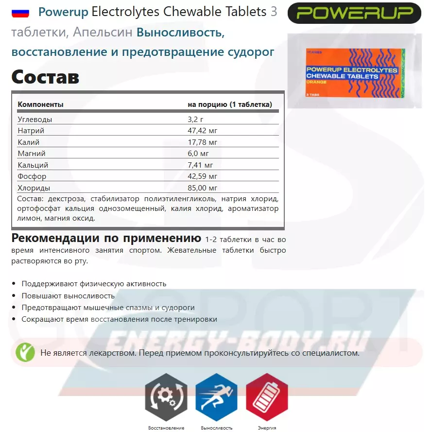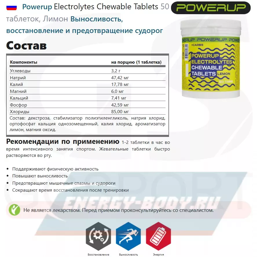 Состав Powerup Electrolytes Chewable Tablets