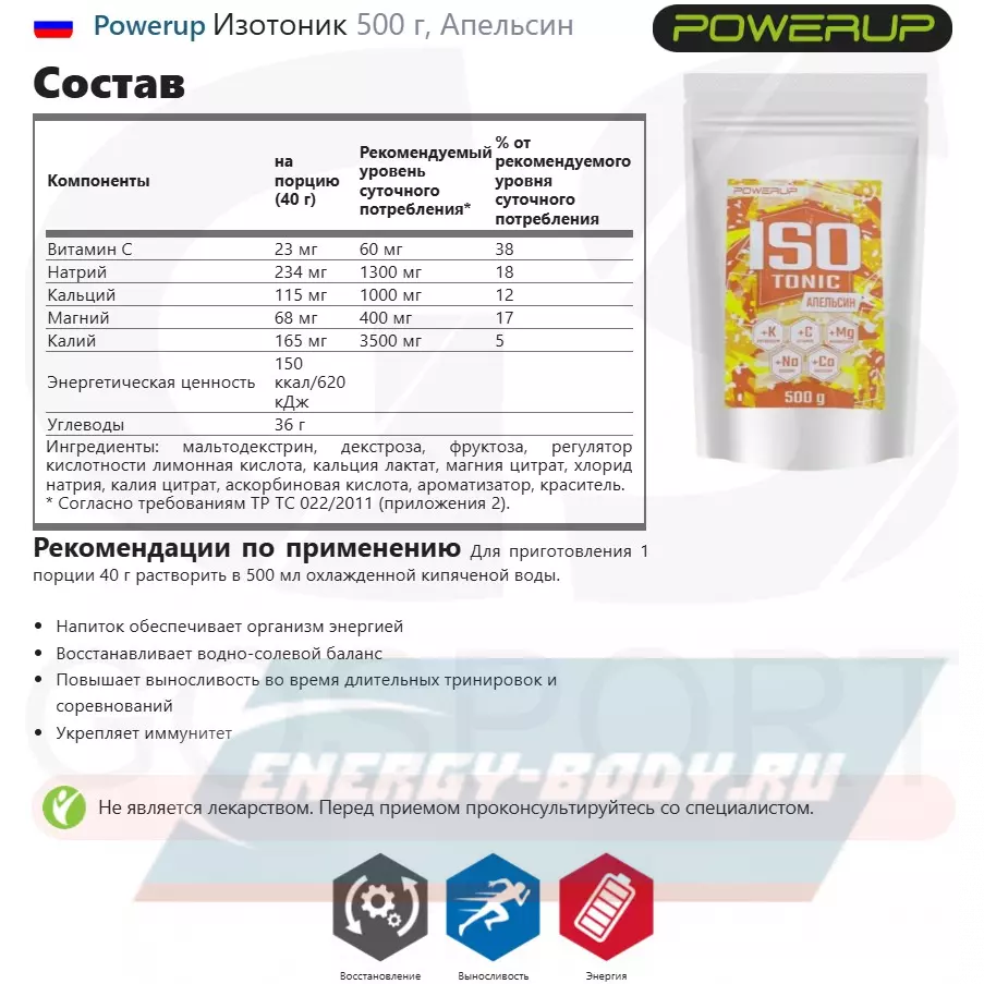 - Восстановление, Выносливость, От судорог в мышцах, Энергия