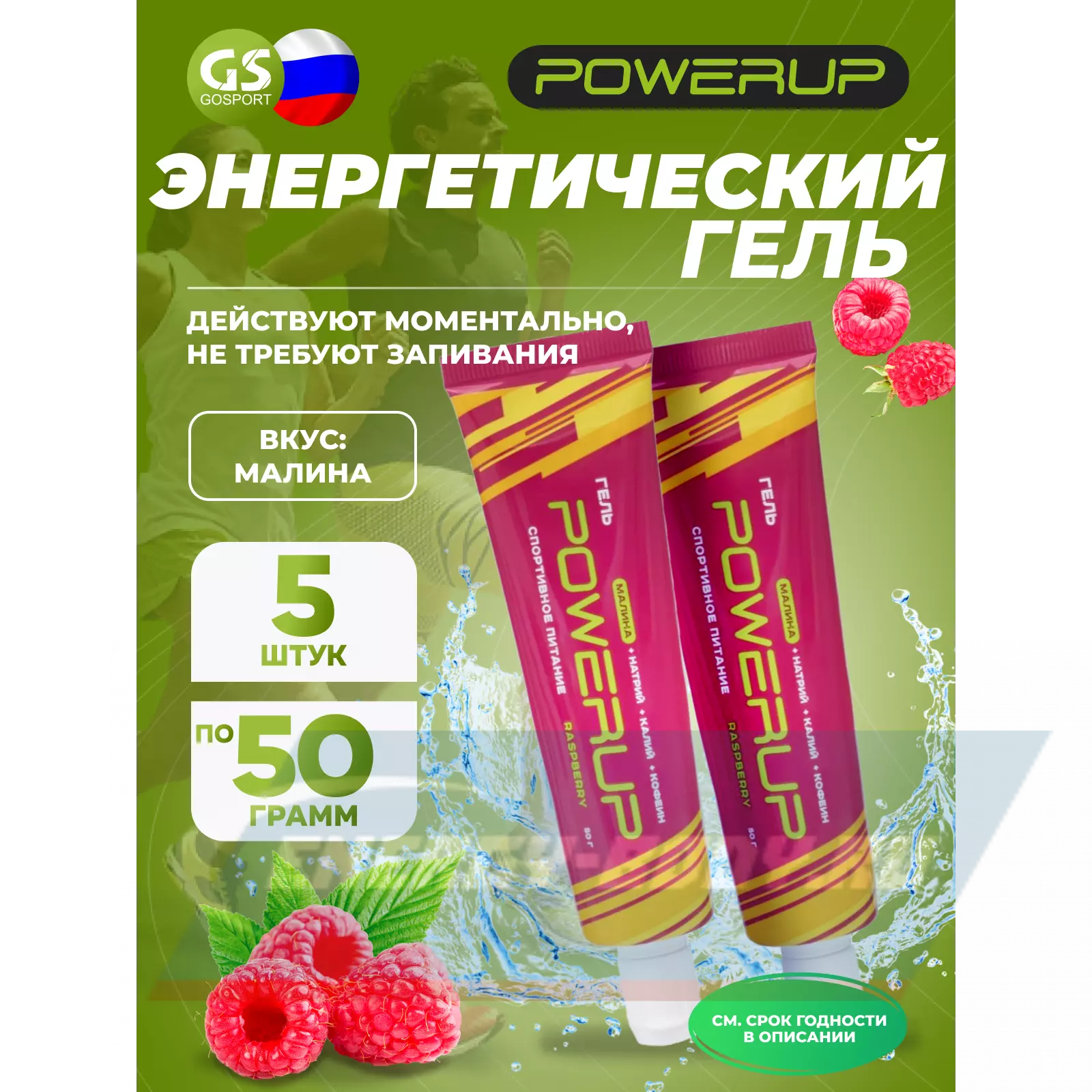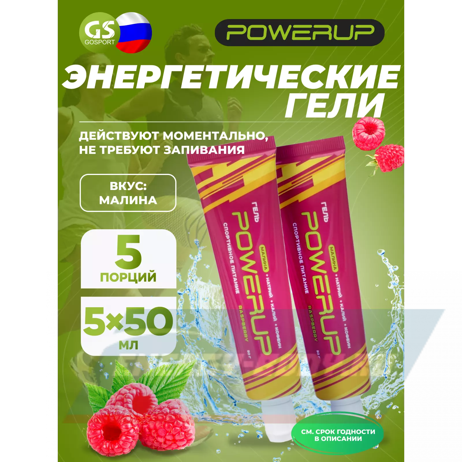 Powerup Гель POWERUP с кофеином 5 х 50 мл, Малина