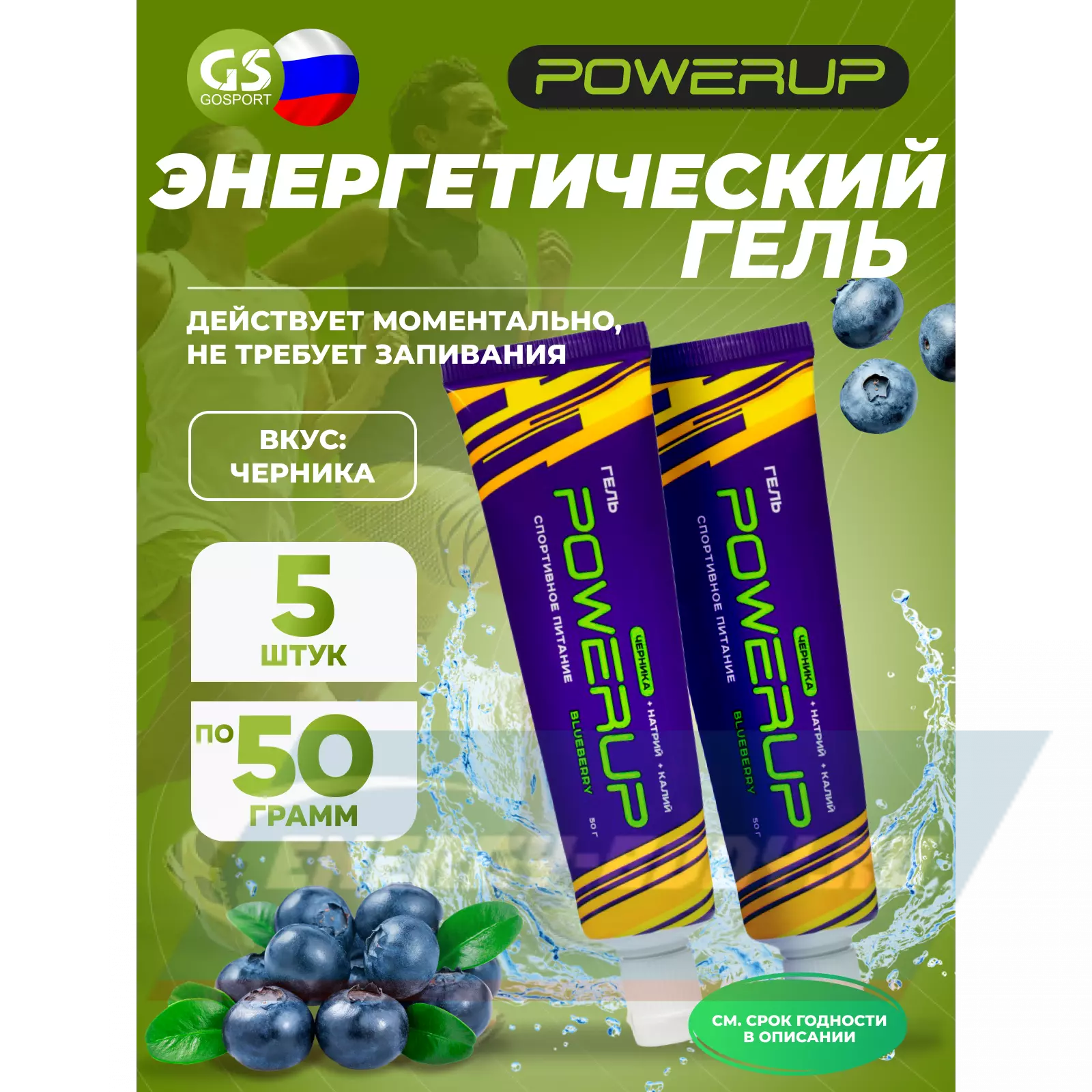 Набор гелей с углеводами и электролитами 5 х 50 г, Черника