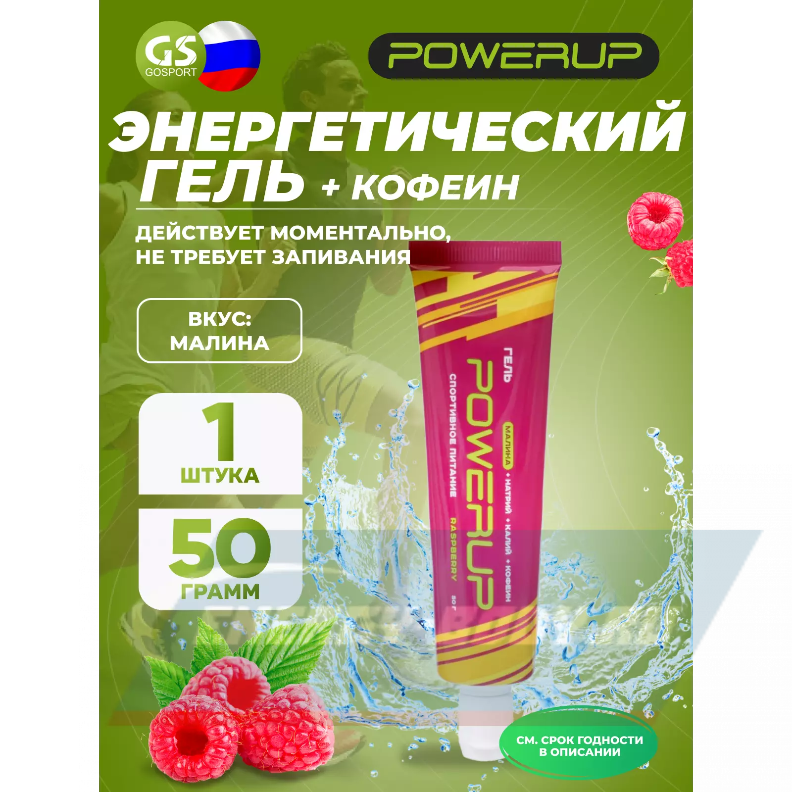 Powerup Гель POWERUP с кофеином 50 г, Малина