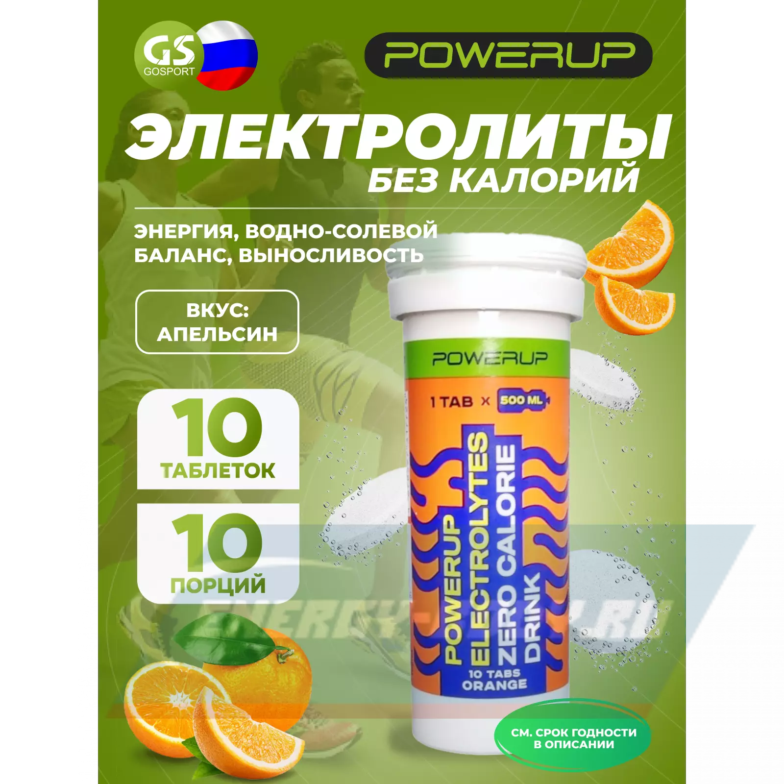 Powerup ELECTROLYTES ZERO CALORIE DRINK 10 шипучих таблеток, Апельсин — Энергия, водно-солевой баланс и выносливость