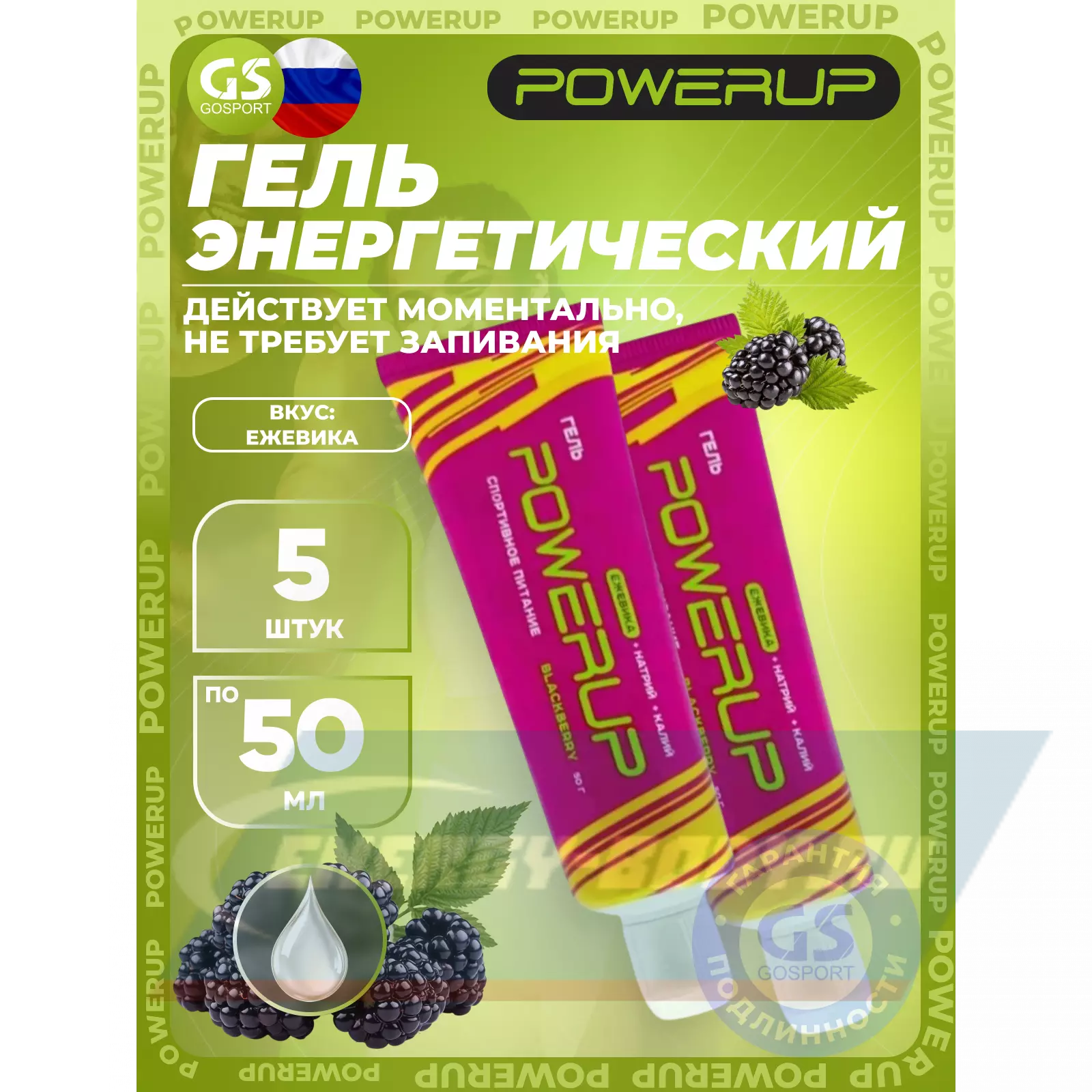Производители геля PowerUp создали уникальную, углеводную матрицу, которая позволяет добиться спортсменам эффекта моментального действия и пролонгировать его на долгое время.
