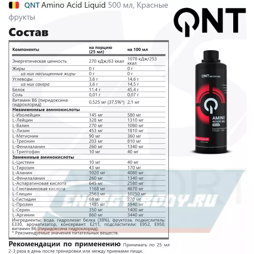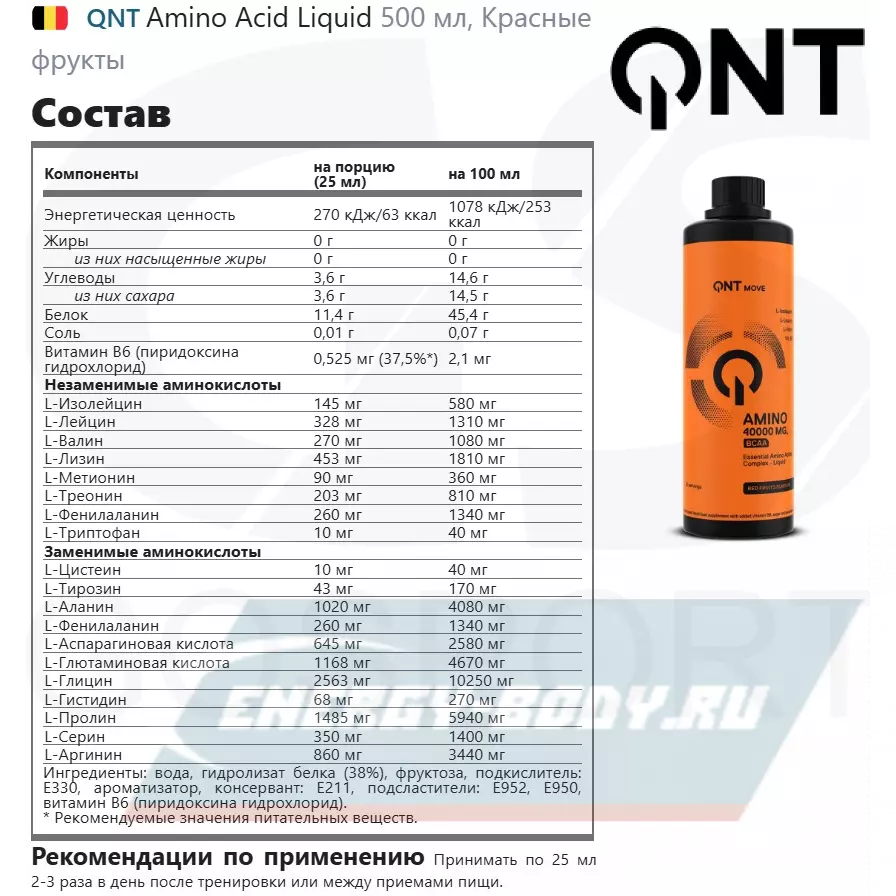 QNT Amino Acid Liquid 500 мл, Красные фрукты — Выносливость, рост и восстановление мышц