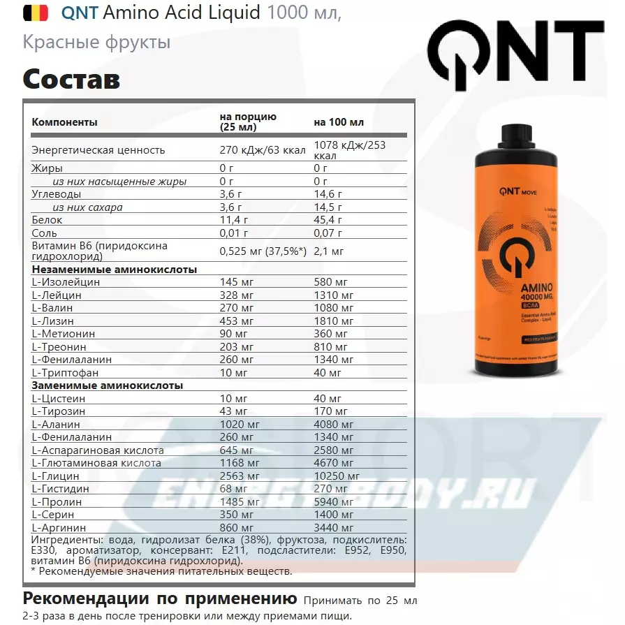 QNT Amino Acid Liquid 1000 мл, Красные фрукты — Выносливость, рост и восстановление мышц