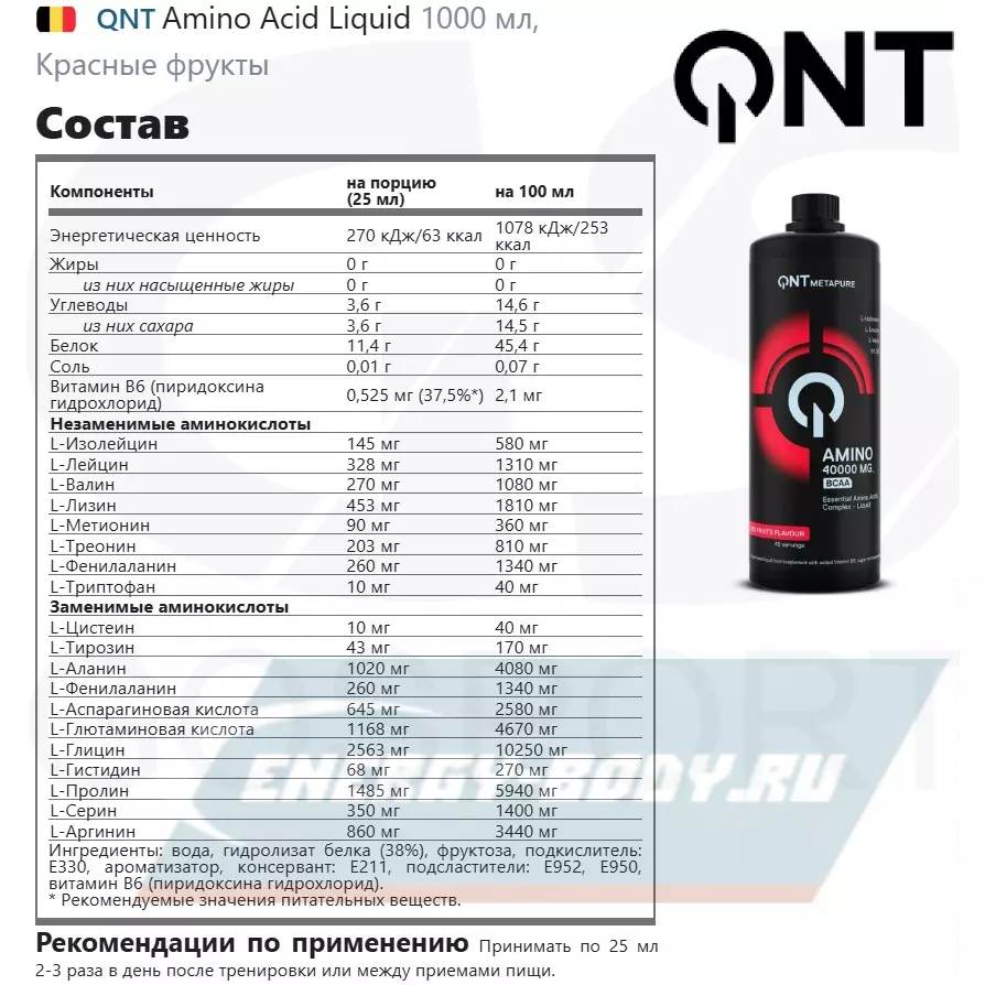 Формула AMINO ACID LIQUID также обогащена витамином B6, витамином, необходимым для питания силовых атлетов, поскольку он участвует в обмене белков и углеводов и способствует снижению усталости и усталости.