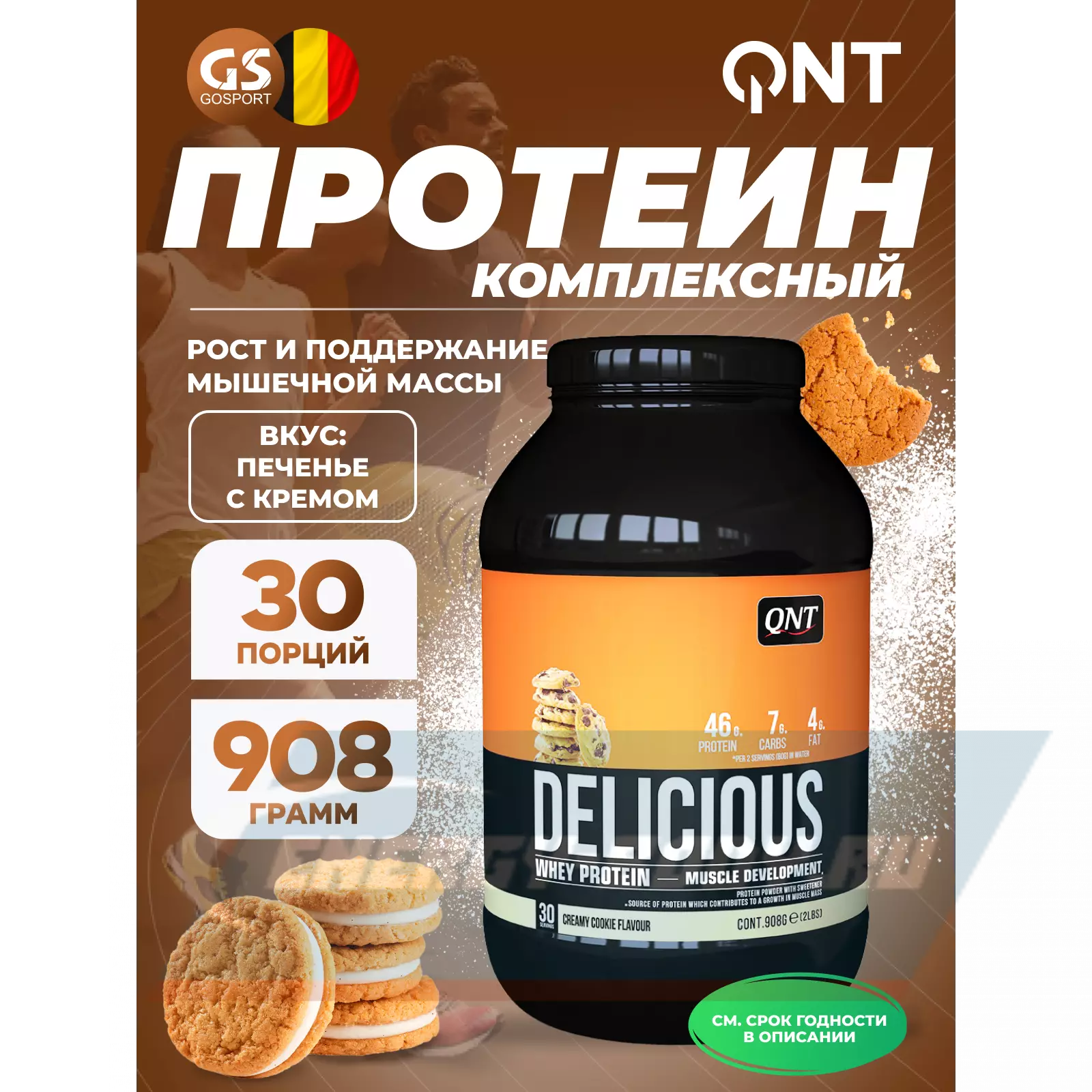 QNT DELICIOUS WHEY PROTEIN POWDER 908 г, Печенье с Кремом