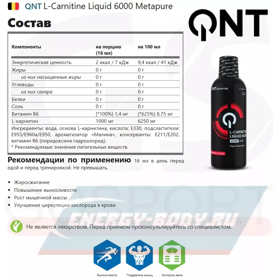 Состав QNT L-Carnitine Liquid 6000 Metapure